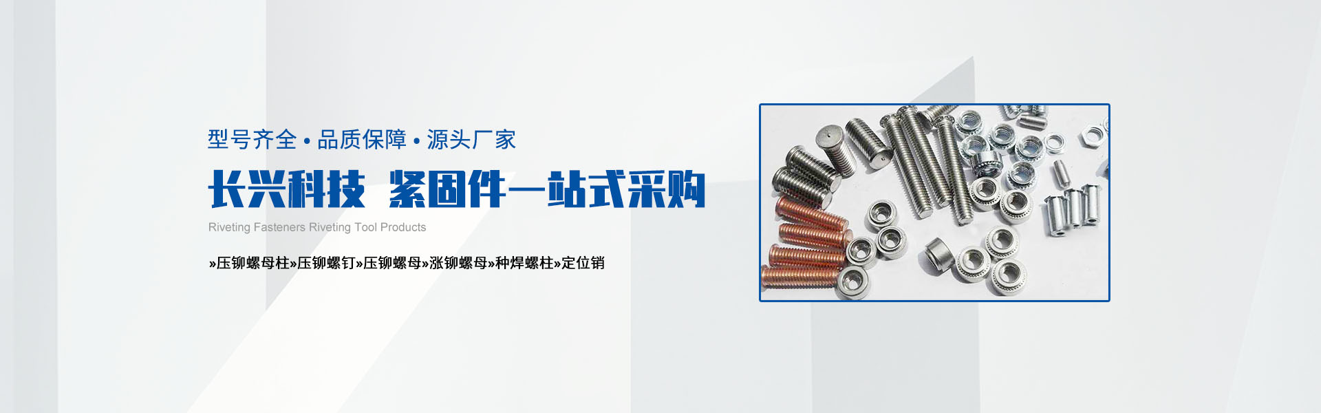 主要產品包括PEM壓鉚緊固件,面板緊固件(松不脫),不銹鋼卡式螺母,部分冷鐓螺母以及非標車制零部件,拉鉚螺母。手動鉚接工具,氣動鉚接工具。代理銷售美國雅固拉(Accuride)電子滑軌,美國索斯科(Southco)鎖具等等國內外知名品牌。廣泛地應用于電子機箱,通信設備,機械設備,船舶制造、汽車制造、裝飾裝潢、電器儀表等各種行業。